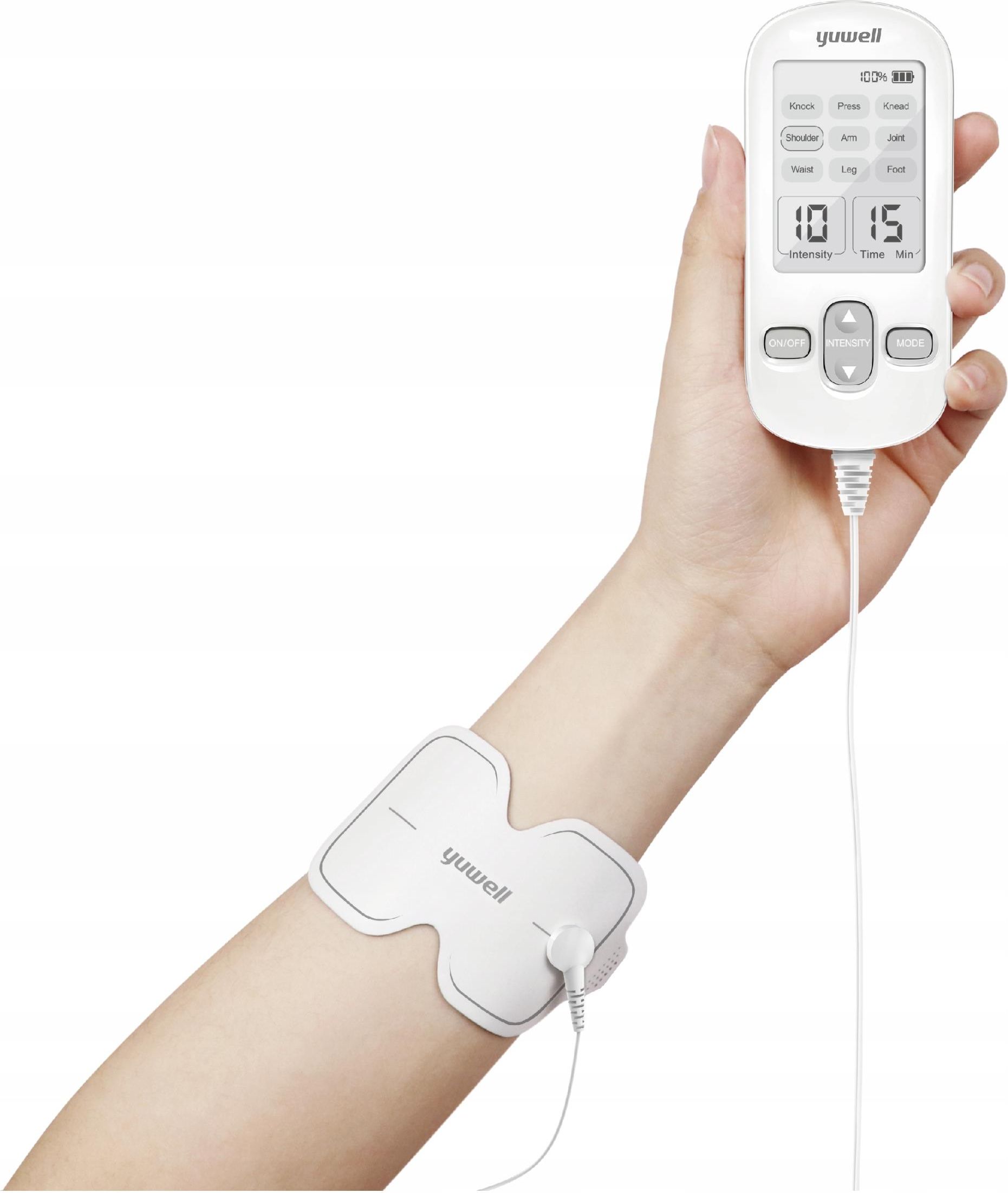 Opis produktu Elektrostymulator SDP-330 TENS marki Yuwell aparat do elektrostymulacji prądami TENS, zasilany z wbudowanego akumulatora ładowanego przez USB. Stosowany w terapii przeciwbólowej, do wzmacniania i rozbudowy mięśni, a także do masażu relaksacyjnego. Jest przeznaczony do użytku profesjonalnego - w szpitalachm klinikiach oraz użytku domowego - w warunkach domowej opieki zdrowotnej. Stymulator nerwów i mięśni SDP-330 jest zaawansowanym urządzeniem do elektroterapii wyposazonym w 1 kanał wyjściowy, a także w regulację trybów i intensywności wyprowadzanych impulsów. Zasada działania stymulatora nerwów i mięśni jest podobna jak w przypadku tradycyjnych elektronicznych instrumentów terapeutycznych, przy tym aparat stanowi połączenie nowoczesnej technologii mikrokomputerowej z metodami stosowanymi w tradycyjnej medycynie chińskiej. Czym jest prąd TENS? TENS, to przezskórna elektryczna stymulacja nerwów sensorycznych, która jest efektywną metodą uśmierzania bólu powszechnie stosowaną i uznawaną przez fizjoterapeutów klinicznych, rehabilitantów i sportowców na całym świecie. Prądy TENS o wysokiej częstotliwości aktywują mechanizmy blokowania bólu w systemie nerwowym wykorzystując zjawisko tzw. bramki bólowej. Impulsy elektryczne wychodzące z elektrod naklejonych na skórze nad miejscem bólu, stymulują nerwy czuciowe, aby zablokować dotarcie sygnału bólowego do mózgu, co sprawia, że ból nie jest odczuwany. Natomiast prądy TENS o niskiej częstotliwości stymulują uwalnianie endorfin, naturalnych substancji przeciwbólowych naszego organizmu. TENS nie leczy przyczyn bólu, natomiast zmniejsza jego odczuwanie. Dotyczy to zarówno bólu ostrego jak i przewlekłego. Zastosowanie: Elektrostymulator TENS, model SDP-330 służy do aplikowania impulsów o niskiej częstotliwości w celu stymulacji ludzkiego ciała. Jego działanie polega na doprowadzaniu prądu elektrycznego do elektrod na skórze pacjenta w celu uśmierzania bólu. Przeciwwskazania: Stosowanie produktu jest zabronione w przypadku następujących kategorii pacjentów: pacjenci ze wszczepionymi urządzeniami medycznymi; kobiety w ciąży, dzieci; pacjenci w owrzodzeniami, zadrapaniami, świeżymi bliznami lub podrażnieniem skóry. Zalecany dla osób powyżej 18 roku życia. Elektrostymulator SDP-330 YUWELL powinien spełnić podstawowe oczekiwania osób pragnących stosować nieskomplikowane urządzenie do elektroterapii prądami TENS średniej mocy. Co go wyróżnia? Mała kompaktowa obudowa; 8 trybów pracy; 9 poziomów intensywności terapii: poziom 1-3 - niska intensywność - na wrażliwe części ciała; poziom 4-7 - umiarkowana intensywność - dedykowane dla osób doświadczających łagodnego lub umiarkowanego bólu; poziom 8-9 - wysoka intensywność - dedykowane dla osób doświadczających ostrego bólu; Wbudowany akumulator - nie ma konieczności wymiany baterii; Ładowanie za pomocą micro-USB (podczas ładowania nie można wykonywać zabiegu); Wysoka jakość wykonania; Wyrób medyczny; Ceryfikat CE; Gwarancja: 1 rok. W zestawie oprócz elektrostymulatora: Komplet 2 elektrod - elektrody wystarczają na 300 zabiegów; Kabel USB (mikro-USB); Ładowarka; Komplet przewodów połączeniowych. Instrukcja obsługi. W zestawie oprócz elektrostymulatora: Komplet 2 elektrod - elektrody wystarczają na 300 zabiegów; Kabel USB (mikro-USB); Ładowarka; Komplet przewodów połączeniowych. Instrukcja obsługi.