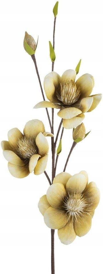 Kwiat sztuczny dekoracyjny oliwkowy 97 cm Cena dotyczy jednej sztuki Lubisz kwiatowe kompozycje i bukiety? To świetnie, bo teraz mogą Cię one cieszyć o każdej porze roku. Sztuczny kwiat dekoracyjny na gałązce wykonany z niezwykłą dbałością o detale, zachwyca naturalnym pięknem. Gałązka z kwiatami jest idealnym dodatkiem do bukietów, dekoracji i różnego typu kompozycji kwiatowych. Kwiaty wykonane są z plastycznej pianki foamiran, dzięki czemu można je z łatwością ułożyć, natomiast łodyga z tworzywa sztucznego, ze specjalnym drucikiem w środku, pozwala na modelowanie łodygi. Ogromną zaletą kwiatów syntetycznych jest fakt, że zawsze wyglądają świeżo i nie wymagają specjalnej pielęgnacji, wystarczy przetarcie wilgotną ściereczką. Syntetyczne kwiaty idealnie nadają się do wystroju wnętrz, wnoszą do wnętrza świeżość i cieszą oko niezależnie od pory roku. Dane techniczne wysokość całkowita: 97 cm skład: 90% EVA (pianka foamiran), 10% metal