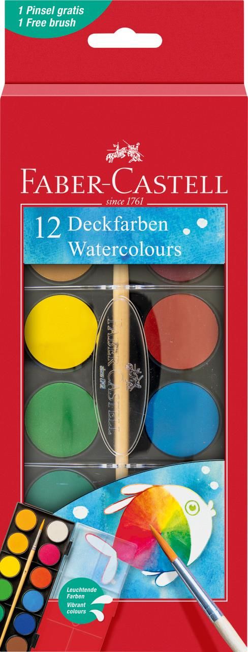 Faber-Castell Farby Szkolne 30 Mm Kasetka Duża 12 Kolorów Pędzelek Uniejów