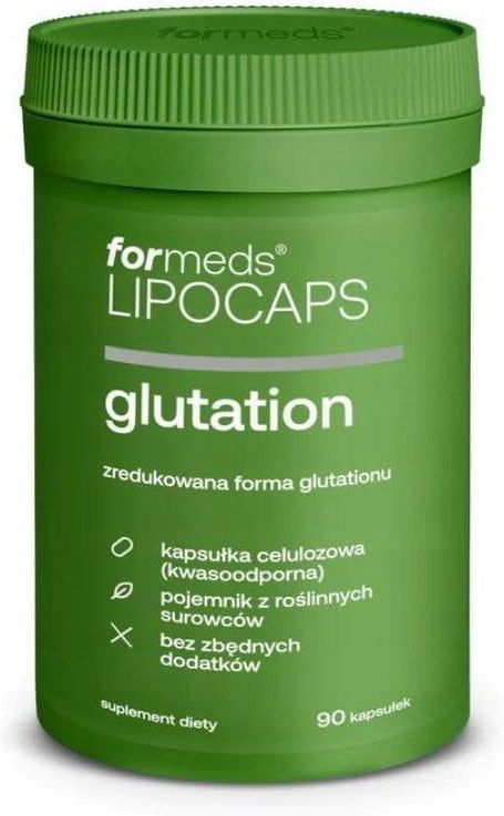 LIPOCAPS GLUTATION ForMeds Suplement diety Zalety: ✅ LIPOCAPS GLUTATION to liposomalny glutation zamknięty w kwasoodpornej kapsułce o opóźnionym uwalnianiu, ✅ Zastosowana w LIPOCAPS GLUTATION kwasoodporna kapsułka o opóźnionym uwalnianiu chroni liposomy aż do 4 godzin przed niekorzystnym dla nich środowiskiem żołądka, a w środowisku jelita uwalnia je bardzo szybko, ✅ Liposomalny glutation jest wysoce przyswajalny oraz w niewielkim stopniu wydalany z organizmu, co ma istotne znaczenie w przypadku zwiększonego zapotrzebowania na glutation, ✅ Produkt nie zawiera m.in. sztucznych dodatków, konserwantów, alkoholu i słodzików oraz nie wymaga przechowywania w lodówce. Opis Liposomalny glutation jest zamknięta w niewielkich, wodno-lipidowych pęcherzykach zwanych liposomami. Skuteczność liposomów wynika z ich niewielkich rozmiarów oraz podobieństwa ich budowy do struktury błony komórkowej jelita, co ułatwia przenikanie zawartej w liposomach substancji. Technologia produkcji LIPOCAPS GLUTATION została opracowana we współpracy z Warszawskim Uniwersytetem Medycznym. ____________________________________________________________________________________________ Zalecana porcja dzienna (3 kapsułki) zawiera: Glutation – 300 mg ____________________________________________________________________________________________ Informacje ogólne Składniki: inulina, glutation, fosfolipidy (z lecytyny słonecznikowej), kapsułka (HPMC hydroksypropylometyloceluloza, guma gellan). Sposób użycia: Spożywać 3 kapsułki 1 raz dziennie w trakcie posiłku. Zawartość opakowania: 90 kapsułek Ilość porcji: 30 porcji Masa netto: 35,1 g Środki ostrożności: Nie należy przekraczać zalecanej porcji dziennej do spożycia w ciągu dnia. Produkt jest przeznaczony dla osób dorosłych. Kobiety w ciąży i karmiące nie powinny przyjmować produktu bez konsultacji lekarskiej. Produkt nie może być stosowany jako substytut zróżnicowanej diety. Nie stosować w przypadku uczulenia na którykolwiek ze składników produktu. Zrównoważony sposób żywienia oraz zdrowy tryb życia są podstawą prawidłowego funkcjonowania organizmu. Przechowywanie: Przechowywać w suchym i ciemnym miejscu niedostępnym dla małych dzieci. Producent: ForMeds Sp. z o.o.