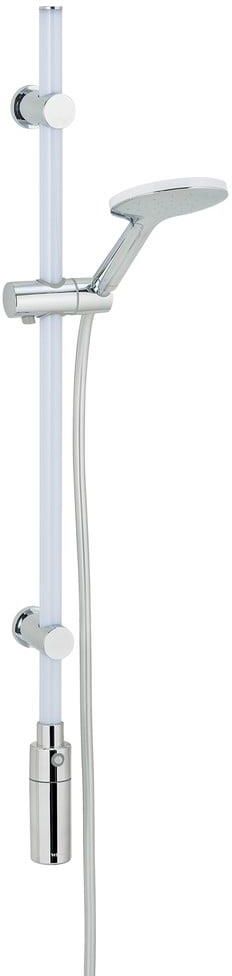 Drążek prysznicowy led 94cm+słuchawka+wąż Wenko Innowacyjna seria słuchawek i drążków prysznicowych od niemieckiej marki WENKO zachwyca ergonomią, funkcjonalnością, jakością i wzornictwem. Zmień swoją łazienkę w oazę SPA i wellness w mgnieniu oka - bez względu na to, którą słuchawkę prysznicową czy deszczownicę wybierzesz! Delikatny, przyjemny prysznic odpręży Cię w czasie kąpieli - dzięki uniwersalnej główce prysznicowej masz wszystko pod kontrolą. Innowacyjna głowica natryskowa świeci w czasie kąpieli dzięki wodoodpornej konstrukcji. Drążek zasilany jest bezprzewodowo - wyjmowany, wodoodporny akumulator ładowany jest za pomocą USB (kabel w zestawie). Długa żywotność nawet do 29 tygodni ciągłego świecenia. Łatwe mycie i czyste dysze to higiena oraz równomierne rozprowadzenie wody na dłużej. Drążek prysznicowy z uniwersalnym przyłączem ½” będzie pasować do przepływowych podgrzewaczy wody. Poręczna i zgrabna słuchawka prysznicowa jest wykonana z wysokiej jakości tworzywa sztucznego (ABS) w kolorze białym. Dzięki temu łazienka zyskuje elegancki, nowoczesny wygląd. Wymiary produktu wynoszą: długość 94 cm. Cechy produktu: Drążek prysznicowy LED, bezprzewodowe zasilanie zapewnia wyjmowany, wodoodporny akumulator, ładowany na USB (kabel w zestawie); emituje ciepłe białe światło, szybki i łatwy w montażu, armatura z uniwersalnym przyłączem ½”, produkt wykonany z wysokiej jakości tworzywa sztucznego (ABS) w kolorze białym, wymiary produktu: długość 94 cm, najwyższa jakość od niemieckiej marki WENKO. 52534
