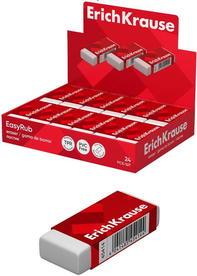 Gumka Erich Krause EasyRub – miękka, ekologiczna, Dust Free, bez PVC. Idealna do precyzyjnego ścierania w szkole i biurze. Z kartonową owijką.
