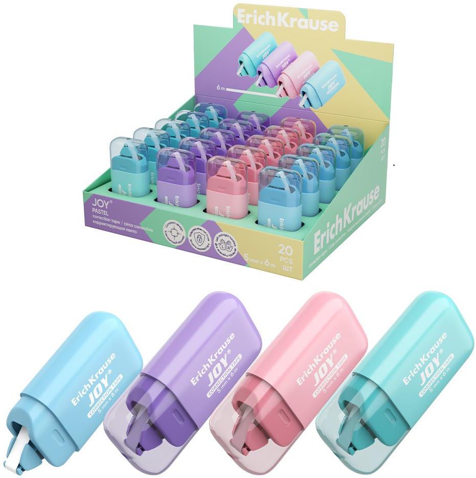 Korektor taśmowy Erich Krause JOY Pastel 5 mm × 6 m – szybka i trwała korekcja Korektor w taśmie Erich Krause JOY® Pastel to trwałe i ergonomiczne narzędzie korekcyjne przeznaczone do precyzyjnego nanoszenia poprawek na dokumenty drukowane lub pisane odręcznie. Kompaktowa, pastelowa obudowa mieści się w każdym organizerze i ułatwia transport. Wyposażony w taśmę o szerokości 5 mm i długości 6 m oraz osłonę zabezpieczającą mechanizm. Szybkoschnący korektor na bazie rozpuszczalnika pozwala natychmiast pisać po korekcie. Zapewnia dobrą przyczepność na różnych typach atramentu. Możliwość użycia prawą i lewą ręką. Parametry techniczne Rodzaj: korektor taśmowy Wymiary taśmy: 5 mm × 6 m Obudowa: pastelowa, z osłoną ochronną Baza: rozpuszczalnikowa Natychmiastowy efekt – szybkie wysychanie Kompatybilność z różnymi atramentami Dla użytkowników prawo- i leworęcznych Opakowanie zbiorcze: display 20 szt., kolory mieszane Rekomendowany do intensywnego użytku w środowisku biurowym, edukacyjnym oraz w domu.