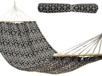 Naturalna bawełna jest miękka, przewiewna i przyjemna w dotyku, co zwiększa komfort użytkowania nawet w ciepłe dni. Materiał dobrze dopasowuje się do ciała i sprzyja relaksowi. To popularny wybór w hamakach ogrodowych i tarasowych. Drążek z drewna utrzymuje hamak w otwartej pozycji, zapobiegając …