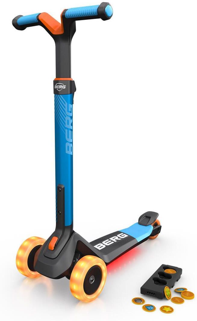 Dzięki BERG Nexo możesz jeździć płynnie i bezpiecznie. Dzięki tej hulajnodze dla dzieci możesz wyruszyć w drogę już od 2 roku życia. 3 koła zapewniają dodatkową stabilność. Antypoślizgowy materiał na rączkach i desce zapewnia dodatkową przyczepność. Blokadę kierownicy można regulować, dzięki czemu można spokojnie przyzwyczaić się do manewrowania hulajnogą. Kierownica ma regulowaną wysokość, dzięki czemu hulajnoga może rosnąć wraz z dzieckiem aż do szkoły podstawowej. Aby zapewnić jeszcze więcej zabawy na hulajnodze, Nexo oferuje dodatkowe opcje i moduły, takie jak światła LED i gry. Chcesz kupić designerską hulajnogę, którą Twoje dziecko będzie się cieszyć przez lata? W takim razie wybierz BERG Nexo.Zalety hulajnogi BERG NexoOdpowiednia dla dzieci w wieku od 2 do 12 latDuża dbałość o bezpieczeństwo i designDodatkowe opcje i moduły zapewniające jeszcze więcej zabawy na hulajnodze.BezpieczeństwoZabawa i bezpieczeństwo były punktami wyjścia podczas projektowania BERG Nexo. Widać to w antypoślizgowym materiale na pokładzie i uchwytach. Ergonomiczny i odporny na zużycie hamulec nożny umożliwia natychmiastowe zatrzymanie się w dowolnym momencie. Blokada kierownicy jest regulowana, dzięki czemu możesz nauczyć się jeździć cicho. Ustaw blokadę kierownicy, a nieoczekiwane ruchy w lewo lub w prawo nie będą już możliwe.Wygoda i komfortGdy już przywiążesz się do swojego Nexo, będziesz chciał cieszyć się nim przez wiele lat. Kierownica jest regulowana na 3 wysokościach, dzięki czemu hulajnoga może rosnąć razem z Tobą przez lata. Hulajnogę można łatwo zabrać w dowolne miejsce. Hulajnogę składa się jednym kliknięciem. Kierownica ułatwia ciągnięcie hulajnogi za sobą. Rozkładanie jest równie łatwe. Na bardzo szerokich, odpornych na zużycie kołachpoliuretan i dzięki optymalnym łożyskom kulkowym hulajnoga ślizga się wygodnie i cicho. Składana hulajnoga w wieku od 2 lat +Koła, które świecą podczas chodzenia (nie wymagają baterii)Kierownica z regulacją wysokości — 3 pozycjeWariant z magnesem pozwala zbierać różne kropki pozostawione na trasie, którą idziesz (kropki znajdują się w zestawie)Hamulec nożny na tylnym koleMożliwość blokowania kierunkuSkładany i łatwy w transporcie