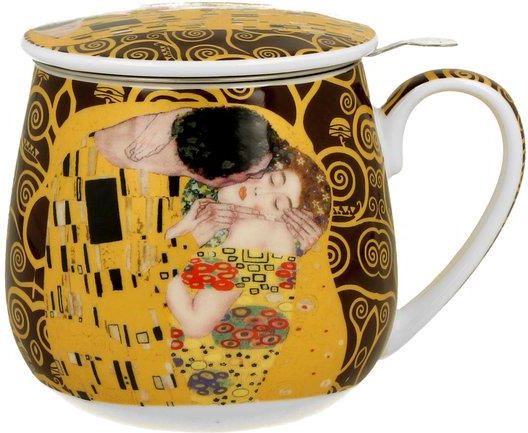 Duo Gift Kubek Baryłka Z Zaparzaczem 43 Duo Gift Kubek Baryłka Z Zaparzaczem 43 to wyjątkowy produkt, który łączy elegancję z funkcjonalnością. Dzięki przemyślanemu designowi oraz dołączonemu zaparzaczowi, parzenie herbaty staje się prawdziwą ceremonią. Kubek ten to idealny wybór dla osób, które cenią sobie zarówno estetykę, jak i praktyczność w codziennym użytkowaniu. Wymiary i pojemność Kubek o pojemności 430 ml to doskonały wybór zarówno na poranną kawę, jak i wieczorną herbatę. Jego wysokość wynosząca 9,8 cm oraz średnica 8 cm sprawiają, że jest wygodny w użyciu i łatwo mieści się w dłoni. Szerokość z uchem to 12,5 cm, co dodatkowo zwiększa komfort picia. Dzięki tym wymiarom, to naczynie jest doskonałym rozwiązaniem dla osób ceniących przestronność i wygodę podczas delektowania się ulubionymi napojami. Materiał wykonania i kolor Produkt został wykonany z najwyższej jakości porcelany New Bone China, znanej z delikatności, gładkości oraz śnieżnobiałego koloru. Porcelana ta jest bardziej wytrzymała niż tradycyjna ceramika, zachowując lekkość i elegancję. Dodatkowo, kubek ozdobiony jest motywem inspirowanym jednym z najsłynniejszych dzieł Gustava Klimta, co nadaje mu wyjątkowego charakteru. Intensywna kolorystyka na brązowym tle przyciąga wzrok, a także sprawia, że naczynie staje się piękną dekoracją stołu. Co więcej, porcelana jest odporna na mycie w zmywarce, co znacząco ułatwia codzienne użytkowanie. Odporność i łatwość czyszczenia Naczynie to zostało przemyślane pod względem funkcjonalności. Oprócz odporności na wysoką temperaturę, co umożliwia serwowanie zarówno gorących, jak i zimnych napojów, dodatkowym atutem jest fakt, że można je myć w zmywarce. Nadruk na kubku jest odporny na ścieranie, co gwarantuje, że jego piękny wygląd i wzór będą cieszyć oko przez długi czas. Dodatkowe funkcje Oferowane naczynie ma wiele funkcji, które zwiększają komfort użytkowania. Poniżej przedstawiamy najważniejsze z nich: Zaparzacz: Dołączony metalowy zaparzacz umożliwia precyzyjne parzenie herbaty, eliminując problem z pływającymi fusami. Pokrywka: Pokrywka pozwala na zachowanie temperatury napoju na dłużej, co jest korzystne dla osób, które chcą delektować się swoim ulubionym napojem bez pośpiechu. Elegancki design: Wyrazista kolorystyka i precyzja zdobienia sprawiają, że kubek prezentuje się niezwykle elegancko, przyciągając spojrzenia. Odporność na zmywarkę: Umożliwia łatwe czyszczenie, co jest istotne w codziennym użytkowaniu. Wysoka jakość materiałów: Porcelana New Bone China zapewnia trwałość i estetykę. Dzięki tym cechom, Duo Gift Kubek Baryłka Z Zaparzaczem 43 staje się idealnym towarzyszem w codziennym życiu. Cieszenie się ulubionym napojem w takim naczyniu to prawdziwa przyjemność.