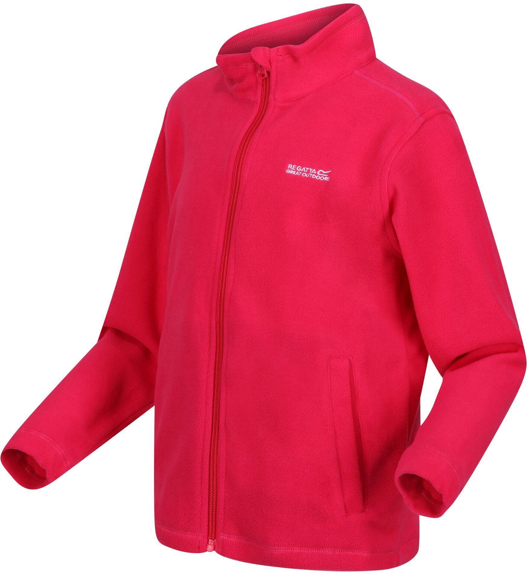 Regatta - Dziecięcy polar z suwakiem King II Wyjątkowo miękki i wytrzymały polar dziecięcy King II zapewnia długotrwały komfort podczas przygód. Dzięki odpornej na zmechacenie stronie wierzchniej polar Symmetry zawsze wygląda jak nowy, a szczotkowane wnętrze jest niezwykle miękkie i przyjemne w dotyku. Suwak na całej długości ułatwia zakładanie i zdejmowanie. Technologia Symmetry - Szybkoschnący, łatwy w pielęgnacji, komfortowy polar z antymechaconym wykończeniem 170 g/m², 100% poliester z recyklingu, polar Symmetry Jednostronnie czesany, jednostronnie odporny na mechacenie 2 dolne kieszenie Materiał 100% Poliester