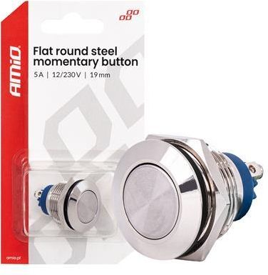 Amio Przełącznik Chwilowy Płaski 12 230V 19Mm 5A Stal Ustroń