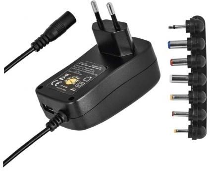 Zasilacz impulsowy 1000mA z wymiennymi końcówkami, USB DANE TECHNICZNE Napięcie wejściowe: 100–240 V~ 50/60 Hz Prąd wyjściowy: max. max. 1000 mA Maks. wyjście razem: 5 V/2,0 A/10 W Produkt: uniwersalne Zastosowanie: uniwersalne Napięcie wyjściowe: 3 V, 4,5 V, 5 V, 6 V, 7,5 V, 9 V, 12 V Ilość wyjść USB: 1 Maks. wyjście 1× USB: 5 V/2,0 A/10 W Ładowanie: nie dotyczy Kolor: czarny Funkcja latarki LED: nie dotyczy Waga: 120 g Przewód: 1,5 m Pojemność akumulatora: nie dotyczy Pobór prądu w stanie czuwania: nie dotyczy Wskaźnik LED: tak Wskaźnik naładowania LED: nie dotyczy Wskaźnik stanu baterii LED: nie dotyczy Maks. obciążenie – ciągłe: nie dotyczy Maks. obciążenie – szczytowe: nie dotyczy Ochrona przed przeciążeniem, przepięciem i zwarciem: tak Typ zasilania: nie dotyczy Sposób zasilania: przewód + komplet złącz DC + USB out Wymiary: 50 × 80 × 32 mm Wymiary złącza: B 3,5/15; C 3,0×1,0/10; D 5,0×2,1/12; G 5,5×2,5/10; H 3,5×1,35/10; I 4×1,7/10; S 2,35×0,75/8,7