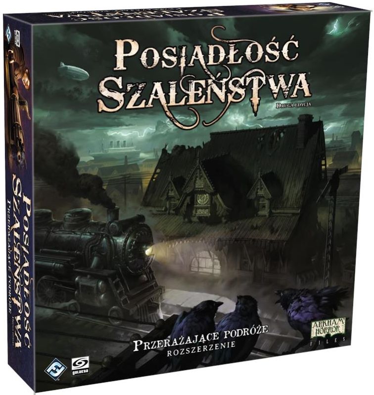 Posiadłość Szaleństwa: Przerażające podróże to rozszerzenie do gry Posiadłość Szaleństwa Druga Edycja, w której badacze znajdą się z daleka od domu, mierząc się ze stale rosnącym zagrożeniem. Posiadłość Szaleństwa. Przerażające podróże Przedwieczni byli, Przedwieczni są i Przedwieczni będą. Najpierwsi i najjaśniejsi nie mieszkają w znanych nam przestrzeniach, lecz pomiędzy nimi, przeto są niewymierni i dla naszych oczu niewidoczni. – H. P. Lovecraft, Zgroza w Dunwich   Przerażające podróże to rozszerzenie do gry Posiadłość Szaleństwa Druga Edycja, w której badacze znajdą się z daleka od domu, mierząc się ze stale rosnącym zagrożeniem. Podczas podróży koleją przez urokliwą prowincję Nowej Anglii dojdzie do rozpadu rzeczywistości, na pokładzie sterowca wysoko nad Atlantykiem rozpocznie się niebezpieczny rytuał, a tajemnicza eksplozja na luksusowym liniowcu pozostawi kolejne pytania bez odpowiedzi. Gdziekolwiek wyruszą badacze, będą musieli zmierzyć się z powstającym złem, a ich podróże nie pozostawią ich niezmienionych. Niniejsze rozszerzenie umożliwia rozgrywkę w trzy nowe scenariusze, wraz z wieloma wydarzeniami mitów i nową łamigłówką. Wprowadza także nowy rodzaj kart – Tożsamości, oraz nowy rodzaj terenu – Szczelinę/Wodę. W rozszerzeniu znajdują się także nowe kafelki mapy, potwory, badacze oraz karty, które pozwolą dodatkowo urozmaicić śledztwa.   Uwaga! To nie jest samodzielna gra. Do rozgrywki wymagana jest gra Posiadłość Szaleństwa. Edycja 2. Zawartość pudełka: 18 kafelków mapy 4 karty i figurki badaczy 7 żetonów i figurek potworów 6 kart Tożsamości 13 kart Przedmiotów powszechnych 7 kart Przedmiotów unikatowych 15 kart Zaklęć 8 kart Stanów 4 karty Obrażeń 4 karty Przerażenia 6 żetonów Osób 43 żetony Szczeliny/Wody 4 żetony Drzwi 50 żetonów Wskazówek