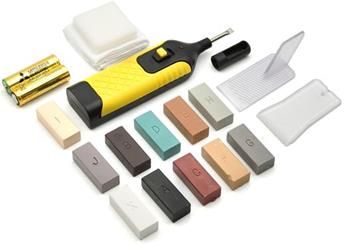 ZESTAW DO NAPRAWY PŁYTEK PODŁÓG LAMINATU GLAZURY Kod: G30146 Producent: GEKO Rodzaje uszkodzeń możliwych do naprawy: Materiały ceramika glazura lastryko kamień podłogi przemysłowe produkty wykonane z tworzyw kamieniopodobnych produkty wykonane z konglomeratów odpryski pęknięcia ubytki otwory po wierceniu CECHY Zestaw umożliwia samodzielną naprawę uszkodzeń na powierzchniach kamienno - ceramicznych. Można nim również naprawić uszkodzenia parkietu, paneli podłogowych i mebli, w zależności od doboru pożądanego koloru wypełnienia. Dołączony do zestawu wosk naprawia głębokie rysy, pęknięcia, nawiercone otwory, otarcia i wyszczerbienia. 11 pałeczek woskowych w różnych kolorach pozwala na dobór właściwego koloru. Woski można dowolnie ze sobą mieszać w celu uzyskania odpowiedniego odcienia. Rozgrzany wosk wypełnia ubytek, a po wyschnięciu twardnieje i tworzy warstwę ochronną. ZAWARTOŚĆ ZESTAWU pałeczki woskowe w różnych kolorach 11 szt urządzenie do topienia wosków szpachelka, czyścik, materiał polerski walizeczka SPOSÓB UŻYCIA Rozgrzanym rysikiem nabieramy pożądany kolor wosku Wypełniamy ubytek, czekamy do wyschnięcia wosku Przy pomocy tarnika usuwamy nadmiar wosku Polerujemy dla uzyskania naturalnego wyglądu