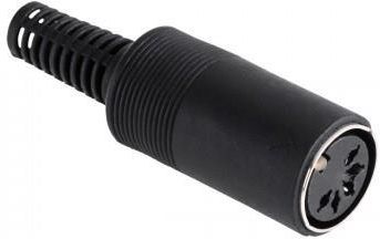 Specyfikacja gniazdo DIN pięcio pinowe z odgiętką; lutowane z osłonką z tworzywa; rozkład złączy gniazda DIN-5 1-wejście audio kanał lewy; 4-wejście audio kanał prawy; 3-wyjście audio kanał lewy; 5-wyjście audio kanał prawy; 2- masa; W sprzęcie mono wykorzystane są 1- wejście audio; 2- wspólna masa; 3- wyjście audio; Podana cena za 2 sztuki