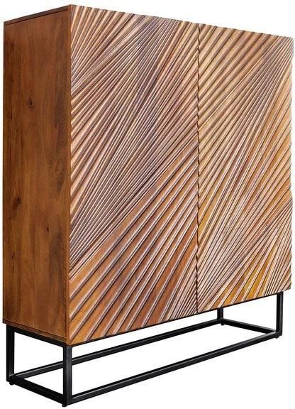 KOMODA LINE ART 100X38 CM MANGO Ta elegancka komoda idealnie wpisze się nie tylko w industrialne, ale także minimalistyczne nowoczesne niewielkie wnętrze. Mebel ten wykonany został z litego drewna mango, którego czarno-brązowy front zdobi dekoracja optyczna o podłużnych kształtach 3D, a jego stabilną i solidną podstawę stanowi metalowa prostokątna czarna konstrukcja. Wyposażona jest w dwie potrójne pojemne półki w kolorze naturalnego drewna mango, które bez problemu zdołają pomieścić rzeczy codziennego użytku, książki czy zastawę stołową, oferując tym samym dużą powierzchnię do przechowywania. Zaletą tej komody jest funkcjonalność, wytrzymałość oraz łatwość czyszczenia, wyróżnia się swoją wyrazistością, kolorem i strukturą powodując, że każdy egzemplarz jest unikatowy. Dzięki swojej smukłej linii całość tego mebla wspaniale komponuje się z konstrukcją utrzymaną w ciemnej tonacji, a efekt końcowy połączenia czarno-brązowego frontu drewna oraz czarnej metalowej podstawy jest fenomenalny. Ponadto wykonana jest niewątpliwie z dużą precyzją, dzięki zachowaniu i odwzorcowaniu naturalnej oryginalności zarówno słojów jak i sęków. Połączenie wyglądu metalu z naturalnym drewnem nadaje jej niezwykle wyjątkowego charakteru, który wspaniale wzbogaci każdy nowoczesny salon. Produkt jest wykonany z surowców naturalnych, przez co może różnić się od prezentowanych zdjęć. Wszystkie przetarcia, szczeliny oraz nierówności są zamierzone. Każdy produkt jest przez to unikalny i oryginalny. Invicta Interior to niezawodny dostawca ekskluzywnych designerskich mebli i akcesoriów domowych. Jest to dynamiczna i doświadczona firma z wieloletnimi międzynarodowymi kontaktami i stale poszukującą nowych produktów i innowacyjnych pomysłów. Dojrzała ogólna koncepcja firmy pozwala zaoferować klientom duży wybór nowoczesnych i klasycznych mebli o wyjątkowej jakości w rozsądnych cenach. Invicta Interior monitoruje wszystkie aktualne trendy w branży meblowej, dlatego klienci zawsze otrzymują najnowsze i najwyższej jakości designerskie meble.