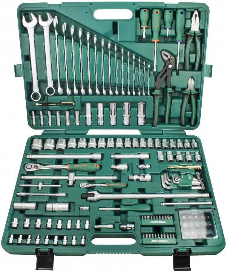 Zestaw nasadek i narzędzi 142 szt. Jonnesway S04H524142S Komplet nasadek i narzędzi ręcznych 142 szt. Jonnesway S04H524142S Zawartość zestawu: ZESTAW 1/4” S04H2 (13szt.) - nasadki 6-kt. 1/4”: 4, 4.5, 5, 5.5, 6, 7, 8, 9, 10, 11, 12, 13, 14mm S04HD2 (6szt.) - nasadki długie 6-kt. 1/4”: 6, 7, 8, 10, 12, 13mm S06H2 (4szt.) - nasadki E 1/4”: E5, E6, E7, E8 R6802 (1szt.) - grzechotka wąska 1/4" 60 zębów S26H2150 (1szt.) - pokrętło wkrętakowe 1/4" S23H21130 (1szt.) - pokrętło z przetyczką 1/4” S15H240 (1szt.) - przegub 1/4” S24H2 (2szt.) - przedłużki 1/4” L=50mm, L=150mm S27H2 (1szt.) - przedłużka elastyczna 1/4” S44H2206 (1szt.) - adapter 1/4" x 6-kąt 1/4" ZESTAW 1/2” S04H4 (19szt.) - nasadki 6-kt. 1/2”: 8, 9, 10, 11, 12, 13, 14, 15, 16, 17, 18, 19, 21, 22, 23, 24, 27, 30, 32mm S04HD4 (5szt.) - nasadki długie 6-kt. 1/2”: 13, 14, 17, 19, 22mm S06H4 (5szt.) - nasadki E 1/2”: E10, E12, E14, E16, E18 R6804 (1szt.) - grzechotka wąska 1/2" 60 zębów S22H41375 (1szt.) - pokrętło łamane 1/2” L=375mm S23H41300 (1szt.) - pokrętło z przetyczką 1/2” L=300mm S15H472 (1szt.) - przegub 1/2” S24H4 (2szt.) - przedłużki 1/2” L=125mm, L=250mm S21H4150 (1szt.) - przedłużka uchylna 1/2” L=50mm S17H (2szt.) - klucze do świec 1/2”: 16, 21mm S44H4208 (1szt.) - adapter 1/2" x 6-kąt 5/16" ZESTAW BITÓW 1/4" 22szt. bity 1/4": ampulowe: H2.5, H3, H4, H5 ,H6 płaskie: 4, 5.5, 7mm krzyżakowe PH: PH0, PH1, PH2x2, PH3 krzyżakowe PZ: PZ1, PZ2 TORX: T10 ,T15, T20, T25, T27, T30, T40 15szt. bity 5/16": ampulowe: H8, H10, H12, H14 płaskie: 8, 10mm krzyżakowe PH: PH4 TORX z otworem: T40, T45, T50, T55 RIBE: M6, M8, M10, M12 NARZĘDZIA RÓŻNE W26 (17szt.) - klucze płasko-oczkowe: 6, 7, 8, 9, 10, 11, 12, 13, 14, 15, 16, 17, 18, 19, 21, 22, 24mm D77 (4szt.) - wkrętaki krzyżakowe: PH2x38, PH2x100 i płaskie: SL6.5x38, SL6.5x100 H01SM109S (9szt.) - klucze ampulowe gięte: 1.5, 2, 2.5, 3, 4, 5, 6, 8, 10mm P0817 (1szt.) - kombinerki 7” P28210 (1szt.) - szczypce nastawne 10" z automatyczną blokadą P1016 (1szt.) - szczypce do cięcia boczne 6" AG010034 (1szt.) - chwytak magnetyczny teleskopowy AR030052 (1szt.) - próbnik napięcia 6-24V metalowy Materiał: stal chromowo-wanadowa Opakowanie: walizka z wysokiej jakości tworzywa