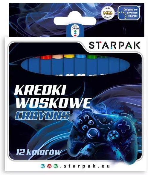 Zalety produktu nie łamią się podczas rysowania ani strugania, dobrze kryją malowaną powierzchnię. Zestaw 12 kredek woskowych w żywych barwach idealnych dla najmłodszych artystów, którzy dopiero zaczynają malować. Zawartość zestawu 12 szt. kredek woskowych. Wykonany z trwałego wosku. Wymiary/waga wymiary produktu dł. cm 9 cm, wymiary opakowania dł. x wys. x gł. cm 10x12x1, waga produktu w opakowaniu kg 0,07 kg. Nie odpowiednie dla dzieci poniżej 3 lat. Pakowane w pudełeczko z okienkiem.Pakowane iner 12 szt. Karton zbiorczy 144 szt.Cechy produktu najbardziej podstawowe przybory plastyczne w przedszkolu i szkole, żywe i intensywne kolory nie brudzą, pakowane w pudełko z systemem easy open dzięki, któremu można je łatwo otworzyć i potem zamknąć, kredki woskowe są wykonane z wosku, mają tłustą konsystencję i dzięki temu są odporne na wodę.Kredki to najbardziej podstawowe przybory plastyczne. Wykorzystywane podczas zabawy i nauki w domu, przedszkolu i szkole. Wszystkie kredki STARPAK mają żywe kolory. Dzięki czemu tworzone prace będą zachwycały intensywnością i nasyceniem barw. Kredki Starpak są łatwe w struganiu i nie łamią się, co jest bardzo ważne, szczegóelnie dla młodszych dzieci. DANE GPSR br / Euro- Trade Sp. Z o.o. Sp.K. br / Władysława Łokietka 155 31-263 Kraków br / 48126144200 br / biuro euro-trade.pl CN 9609909000 br / OSTRZEŻENIA Nieodpowiednie dla dzieci poniżej 3 lat. Zawiera małe elementy lub istnieje możliwość oddzielenia małych elementów. Ryzyko połknięcia, zadławienia, uduszenia. br / nie dotyczy EAN: 5905523688443