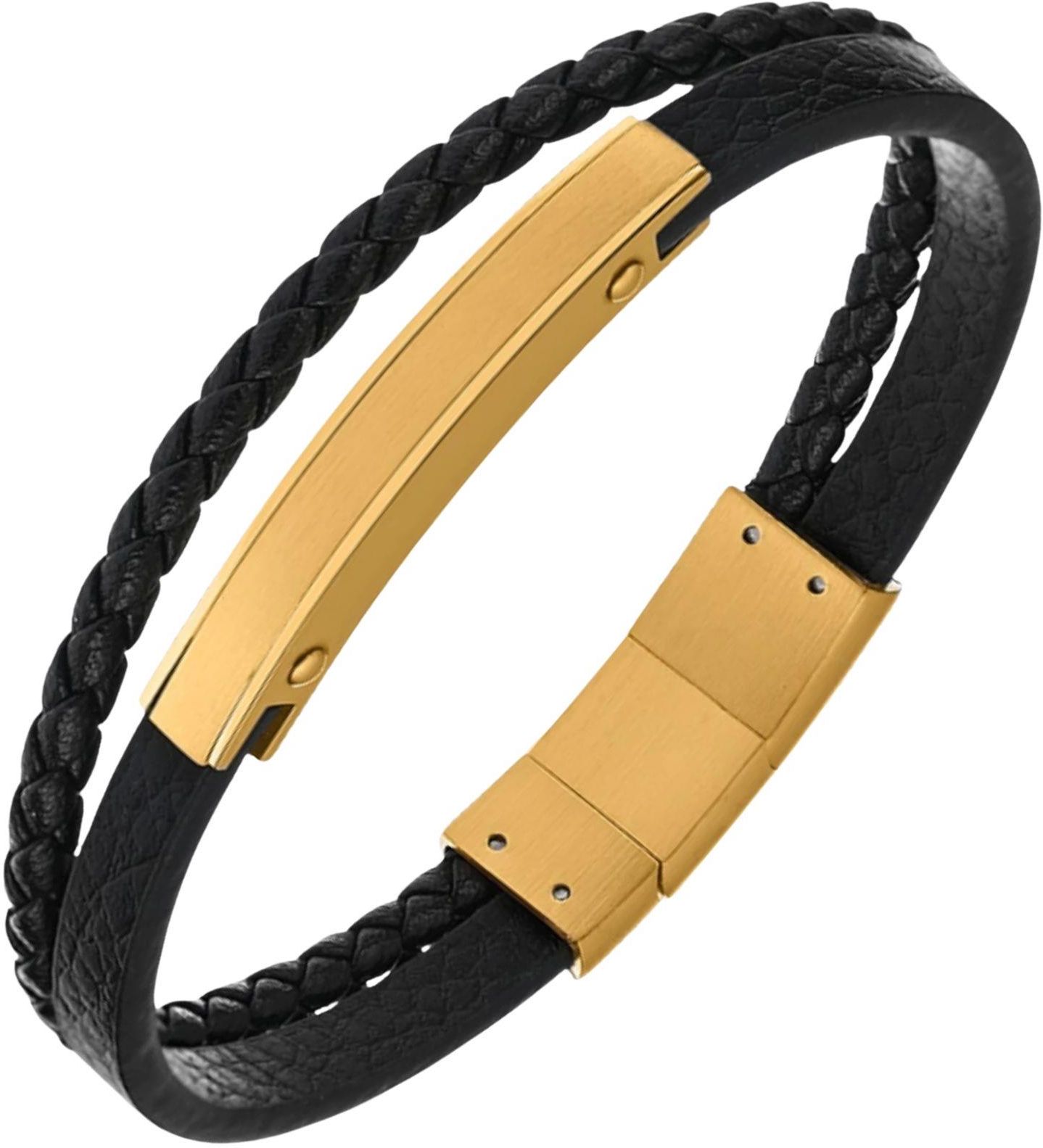 Pacific Bransoletka Męska Skórzana Czarna - złota Ustroń