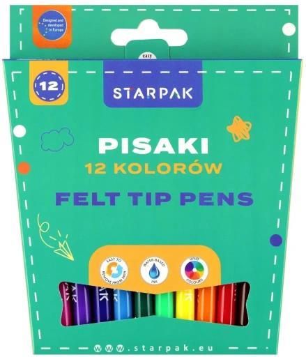Pisaki powinny się znaleźć w plecaku każdego ucznia. Intensywne kolory, długa żywotność, łatwe zmywanie ze skóry i spieranie z odzieży, wentylowana skuwka, odporna na wciśnięcia końcówka pisząca potwierdzają wysoką jakość produktu.STARPAK przedstawia 12 pisaków w intensywnych kolorach. Wymiary/waga Wymiary opakowania (dł. x wys. x gł.) (cm) 14x17x1, waga opakowania (kg.) 0,08kg. Pakowane w kartonik z zawieszką. EAN: 5905523688078