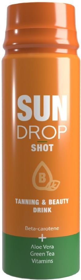 Pakiet 3 sztuki Zdrowa opalenizna od wewnątrz. Wypij orzeźwiający shot, by przyspieszyć opalanie Sun Drop to orzeźwiający shot wspomagający opalanie, nawilżający ciało od wewnątrz i dostarczający skórze potrzebnych składników. 100% sukcesu w opalaniu zapewnia odpowiednie przygotowanie skóry od zewnątrz (kosmetyki) i od wewnątrz (Sun Drop shot). Zdrowy skład. Przepis na idealną opaleniznę: betakaroten - przyspiesz opaleniznę zielona herbata - włącz moce anti-aging aloes - odkręć nawilżenie witaminy - nie zapomnij o odżywieniu