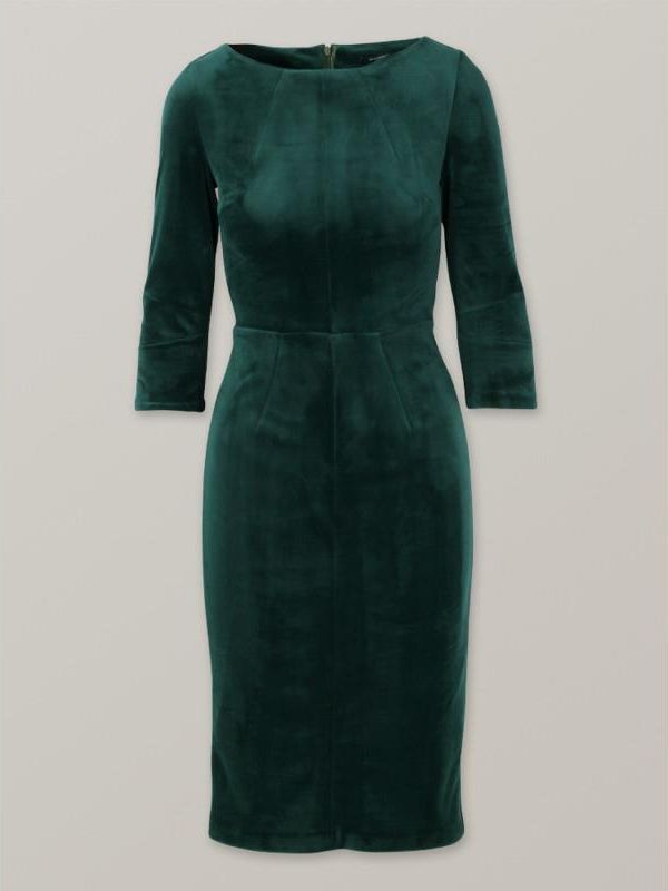 Elegancka dopasowana sukienka Midi Mocno dopasowana sukienka Midi podkreślająca figurę z rękawami 3/4. Lekko rozciągliwa tkanina z dodatkiem elastanu. Kolor główny: zielony Długość rękawów: 3/4 Rodzaj sukienki: mocno dopasowana, długość MIDI Skład: 97% poliester, 3% elastan Wyprodukowano w Polsce Gwarancja: 24 m-ce