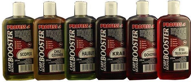 BOOSTER PROFESS – to seria słodkich intensywnych i gęstych aromatów służących do aromatyzowania, dosładzania przynęt i zanęt. Boostery rozpuszczając się w wodzie tworzą chmurę smakowo zapachową, która wabi ryby z dużych odległości. Boostery zawierają substancje wzmacniające apetyt u ryb. Można je bezpiecznie stosować z materiałami PVA. Służą do dopalania, wszelkich zanęt, sticków, nasion itp.