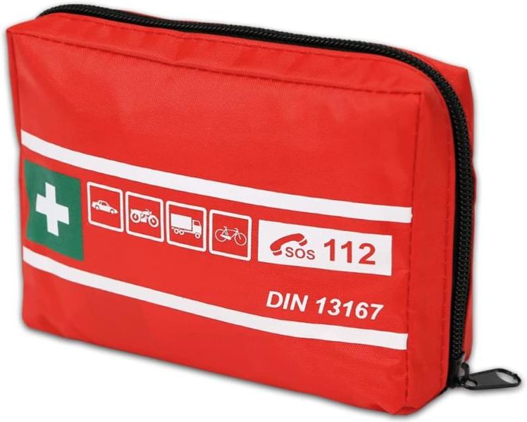 Zestaw pierwszej pomocy, podróże, rower kempingowy – mały i kompaktowy, czerwony, w praktycznym etui ze szlufką na pasek ️DIN13167 dla motocyklistów. Zawartość ma najwyższą jakość i bardzo długi okres trwałości, nadaje się do krajów europejskich (Niemcy, Austria, Szwajcarii, Włochy, itd.) Dzięki małym wymiarom apteczkę można schować do kieszeni, przymocować na kask lub położyć w schowku. Mini zestaw można łatwo przechowywać podczas każdej wycieczki rowerowej lub łatwo schować i zajmuje niewiele miejsca. Dzięki temu jesteś przygotowany na wypadek sytuacji awaryjnej Zawartość zgodnie z DIN 13167: szpula do zszywania 5 m x 2,5 cm, 14-częściowy zestaw plastrów, 1 opakowanie opatrunkowe (sterylne), 1 chusta opatrunkowa 60 cm x 80 cm (sterylna), 1 koc ratunkowy srebrny/złoty, 1 nożyczki, 4 rękawice winylowe zgodne z normą DIN EN 455, 2 chusteczki do czyszczenia Wymiary produktu 16 x 11 x 5 cm; 300 gr