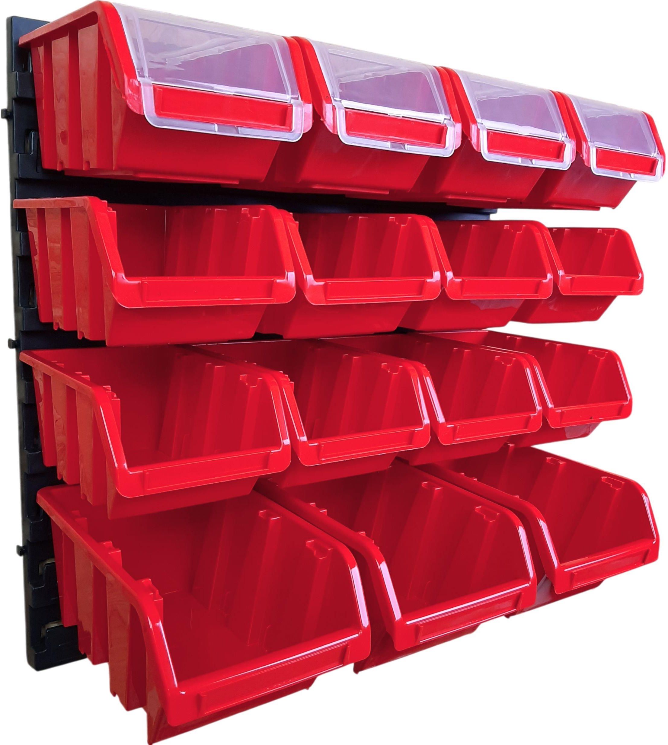 Tablica narzędziowa, ścianka warsztatowa TND1 39x39cm z pojemnikami Co znajdziesz w zestawie? Tablica naścienna 39 x 39 cm – solidna konstrukcja z tworzywa sztucznego (grubość 1,8 cm). Pojemniki KTR16 (8 szt.), KTR16F (4 szt.) i KTR20 (3 szt.) – idealne do przechowywania małych akcesoriów, śrubek, gwoździ czy narzędzi. Specyfikacja szerokość - 39cm wysokość - 39cm grubość - 1,8cm materiał - tworzywo sztuczne Tablice doskonale sprawdzają się w profesjonalnym warsztacie, magazynie przydomowym garażu, domu, spiżarni. Zastosowanie Tablica idealnie sprawdzi się w Profesjonalnym warsztacie – pomogą w utrzymaniu porządku i organizacji narzędzi. Magazynie – przechowuj akcesoria w jednym, widocznym miejscu. Garażu lub przydomowym warsztacie – wygodny dostęp do narzędzi w każdej chwili. Domu lub spiżarni – doskonała do przechowywania drobnych akcesoriów codziennego użytku. Co wyróżnia tę tablicę? Modularność – tablicę można łatwo rozszerzać, łącząc kolejne panele, co daje możliwość rozbudowy systemu w miarę potrzeby. Dowolna konfiguracja – pojemniki oraz uchwyty można dowolnie zmieniać i dostosowywać do swoich potrzeb, dzięki czemu zawsze będziesz miał idealny układ narzędzi. Ciekawostki W zależności od potrzeb, możesz wymieniać pojemniki lub uchwyty – zmieniając ich rozmieszczenie, dostosujesz tablicę do rosnących wymagań. System montażu sprawia, że nie musisz martwić się o miejsce – z łatwością dołączysz kolejne moduły tablicy. Dzięki tej tablicy warsztatowej nie tylko zaoszczędzisz czas, ale także stworzysz idealną przestrzeń roboczą. Zainwestuj w porządek i wygodę, a prace naprawcze, majsterkowanie i organizacja staną się przyjemnością! Nie kończąca się ściana" to nowa idea tablic naściennych, które można dołączać z dowolnej strony do wcześniej zamontowanych modułów. Dzięki pomysłowej konstrukcji tablice pozwalają na zamienne wieszanie pojemników lub uchwytów do narzędzi. W każdym momencie można zmienić wielkości i proporcje kuwet lub w miejsce narzędzi powiesić dodatkowe pojemniki i odwrotnie. Specyfikacja Truck KTR16/KTR16F długość - 15,5 cm szerokość - 10 cm wysokość - 7 cm Materiał - tworzywo sztuczne Specyfikacja Truck KTR20 długość - 19,5 cm szerokość - 12 cm wysokość - 9 cm Materiał - tworzywo sztuczne