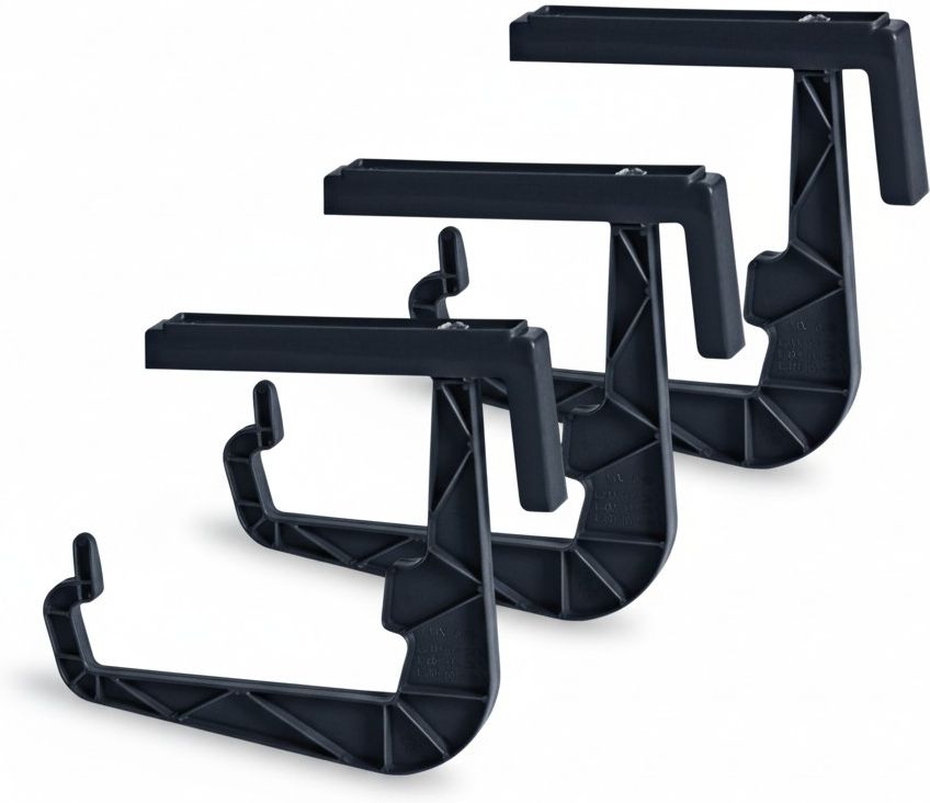 Uchwyty do doniczek balkonowych Regulowane 3 sztuki - Antracyt Uchwyty balkonowe to praktyczne akcesorium, niezbędne dla każdego posiadacza balkonu czy tarasu. Mają wzmocnioną konstrukcję i regulowaną szerokość. Dobór ilości uchwytów do doniczek Długość doniczki: 40 - 50cm = dwa uchwyty Długość doniczki: 60 - 70cm = trzy uchwyty Długość doniczki: 80 - 100cm = cztery uchwyty Uchwyt pasuje do barierek o szerokości od 1 do 12,5 cm. Maksymalne obciążenie pojedynczego uchwytu: 6 kg