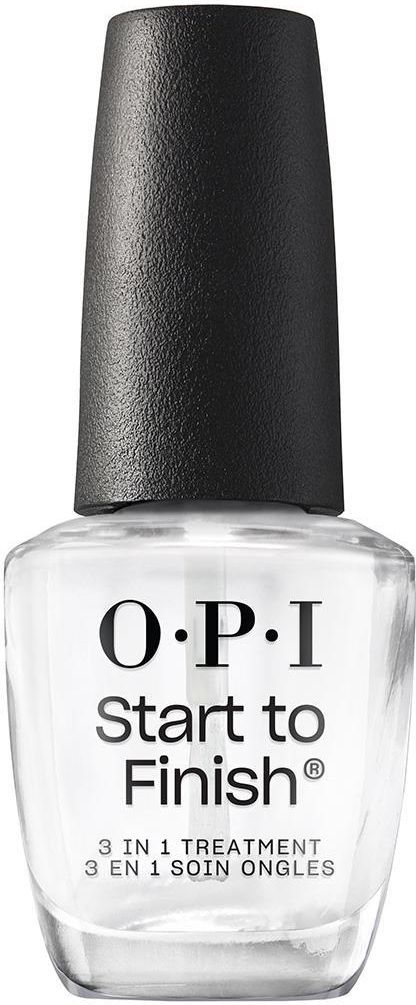 Kuracja OPI Start To Finish 3 w 1 oferuje trzy korzyści w jednym produkcie: Baza: skutecznie chroni naturalny paznokieć przed szkodliwymi czynnikami zewnętrznymi. Top Coat: zapewnia długotrwały połysk i utrzymuje manicure przez 7 dni. Odżywka: przy regularnym stosowaniu skutecznie chroni paznokcie przed kruszeniem się, rozdwajaniem i łamaniem, utrzymując je zdrowe i mocne. Produkt jest wegański i 9-Free*. * Formuła bez formaldehydu, bez żywicy fenolowo-formaldehydowej, bez metylobenzenu, bez ksylenu, bez ftalanu dibutylu, bez kamfory, bez paraben�w, bez tosylamidu etylu, bez fosforanu trifenylu. Składniki: Ethyl Acetate, Alcohol Denat., Butyl Acetate, Nitrocellulose, Acrylates/Hydroxyesters Acrylates Copolymer, Isopropyl Alcohol, Acetyl Tributyl Citrate, Tribenzoin, Tosylamide/Epoxy Resin, Tocopheryl Acetate, Retinyl Palmitate, Violet 2 (CI 60725). Spos�b użycia: Kuracja 3 w 1 Start to Finish to wielofunkcyjny produkt, kt�ry może służyć jako baza, top coat lub odżywka do codziennego stosowania. Należy go nakładać na czyste, niepomalowane paznokcie. Pojemność: 15ml