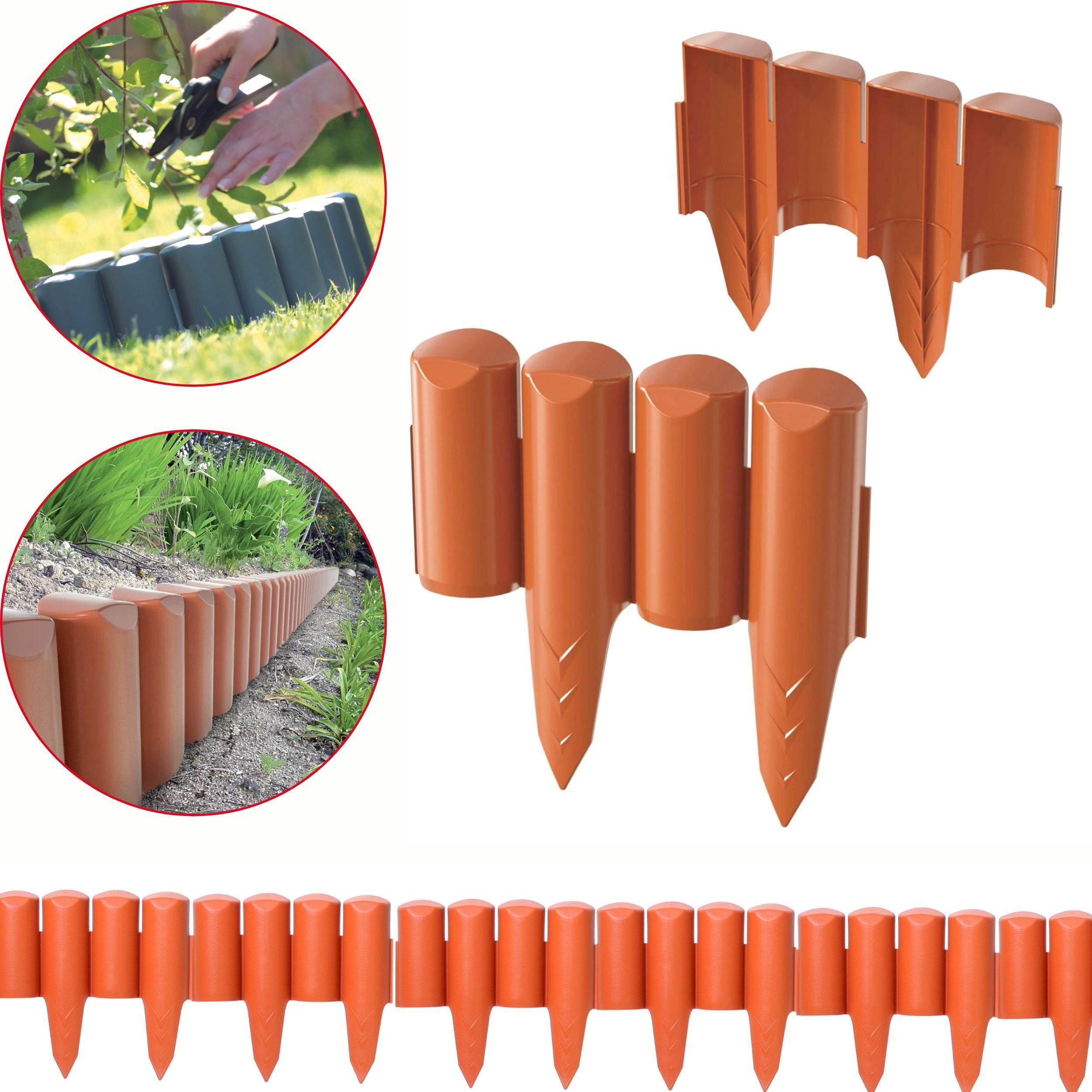 Palisada ogrodowa 5m - Terakota Specyfikacja : długość całkowita - 5m długość pojedynczego elementu - 25 cm wysokość palika - 13 cm wysokość całkowita - 22,8 cm liczba elementów - 20 szt. Zestaw zawiera: 2 opakowania po 2,5m - całość 5m Palisada pozwala na efektowne i trwałe oddzielenie przestrzeni wokół domu i ogrodzie. Odporna na trudne warunki atmosferyczne. Wykonana na zasadzie elastycznych modułów, które umożliwiają tworzenie ogrodzeń o wyszukanych kształtach. Wykonana na zasadzie elastycznych modułów, które umożliwiają tworzenie ogrodzeń o wyszukanych kształtach.