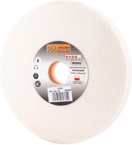 RICHMANN Sciernica ceramiczna 200x20x32mm, C4769 Charakterystyka produktu: Ceramiczna ściernica szlifierska biała o wymiarach 200 x 20 x 32 mm. Otrzymywana z czystego tlenku glinu, jest najczystszym elektrokorundem zawierającym powyżej 99% Al2O3. Charakteryzuje się dużą twardością i kruchością. Stosowana do precyzyjnego szlifowania np.: szlifowanie płaszczyzn, szlifowanie cylindryczne, ostrzenie narzędzi skrawających, stal nieutwardzona, stal hartowana, stal narzędziowa. Tarcza przeznaczona do szlifierek stołowych. Spełnia normy EN12413. Dane techniczne: Rodzaj: Ściernica ceramiczna Wymiary: 200 x 20 x 32 mm Kod produktu: 99A60K Normy: EN12413 Kolor: biały Nr katalogowy: C4769