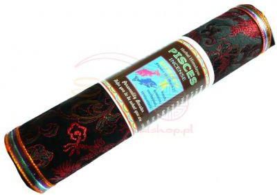 KADZIDŁO RYBY 19.02-20.03 Cechy: punktualne, wrażliwe, współczujące; szczęśliwy numer - 4 i 8; kamień - opal; roślina - Artemisia; kolor - czarny; dzień - niedziela. Składniki: Rododendron anthopogon D., owoce jałowca, stosowna kompozycja ziół tybetańskich wzmocniona eterycznym olejkiem ahtopogon. Sposób użycia: zapal kadzidło i wdychaj bezpośrednio przez kilka chwil, następnie stosuj jak inne kadzidła tybetańskie. Jedwabne opakowanie zawiera 30 kadzideł – każde pali się 60-70 minut.
