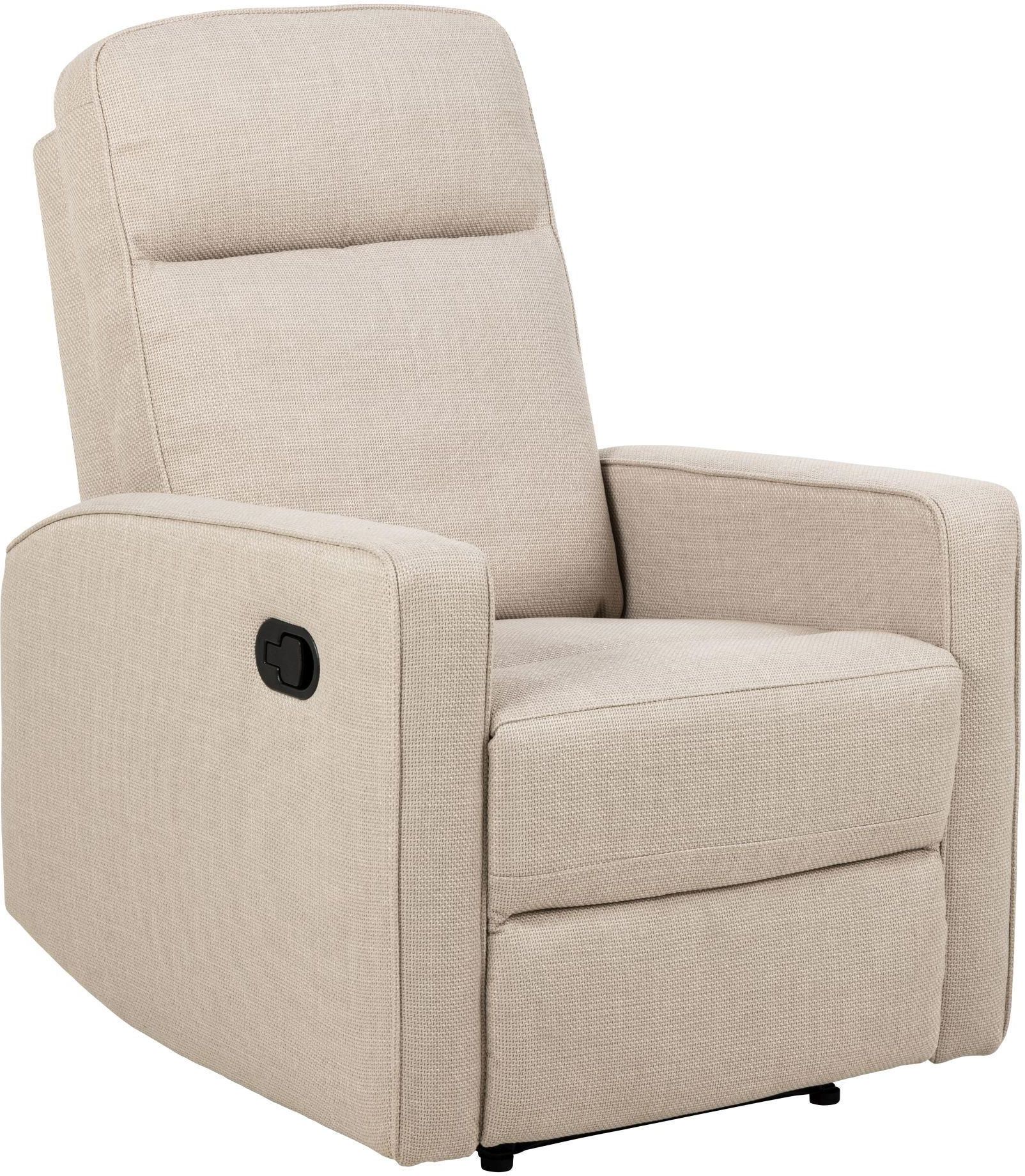 FOTEL ROZKŁADANY ASILA BEŻOWY Ten fotel, wykonany ze strukturalnej beżowej tkaniny i wyposażony w sprężyny kieszeniowe, doskonale łączy wygodę z eleganckim designem. To idealny wybór dla osób, które cenią zarówno komfort, jak i estetykę wnętrza. Dzięki funkcji ręcznego odchylania z łatwością przejdziesz z pozycji siedzącej do relaksującej, bez potrzeby użycia siły. Stylowy i wygodny – ten fotel wprowadzi do Twojego domu harmonię i spokój.