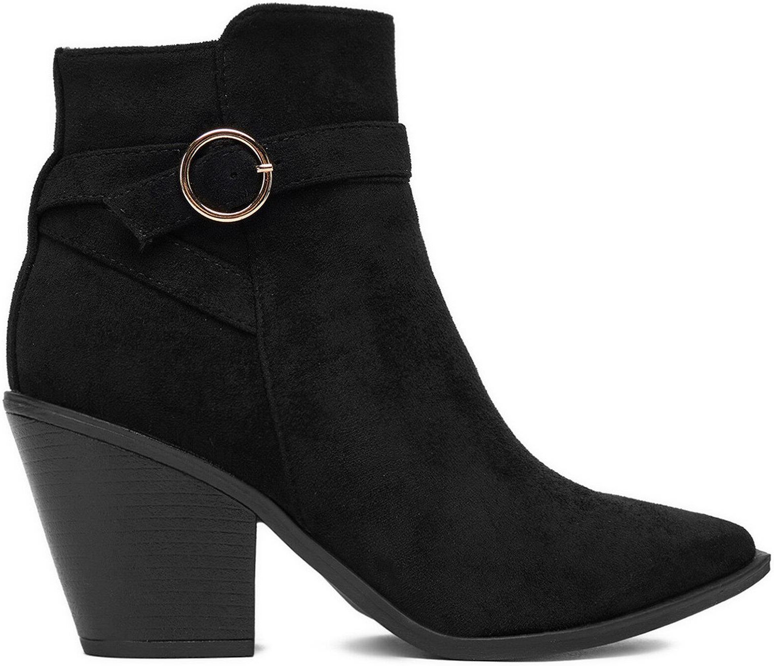 Dodaj do swojej garderoby stylowe botki marki DeeZee, które łączą modny design z funkcjonalnością! Wykonane z wysokogatunkowego tworzywa syntetycznego, zachwycają szpiczastym noskiem i eleganckim obcasem typu słupek, który optycznie wydłuża sylwetkę, zapewniając jednocześnie stabilność. Komfort w chłodniejsze dni gwarantuje ocieplone wnętrze, a praktyczne zapięcie na suwak ułatwia zakładanie butów. Dodatkowym akcentem jest ozdobna klamra, która dodaje całości charakteru i unikalnego stylu. Te botki będą idealnym wyborem na każdą okazję! DeeZee to wyjątkowa kobieca marka, w której znajdują się tysiące produktów skomponowanych z myślą o kobietach. Działająca od 2004 roku marka nieustannie proponuje eleganckie, zmysłowe i efektowne buty na każdą okazję. W ofercie znajdziemy oryginalne czółenka, sandały, espadryle, klapki a także botki i półbuty. Każdy model projektowany jest z pasją i z miłości do mody! Buty marki DeeZee zachwycają lekkością, kolorami i niebanalnymi fasonami, które przypadną do gustu każdej dziewczynie. Kolekcję butów uzupełniają intrygujące torebki. Od rozmiaru XS do XL, wpisują się nie tylko w ponadczasową klasykę, ale też i gorące trendy. Musisz je zobaczyć!