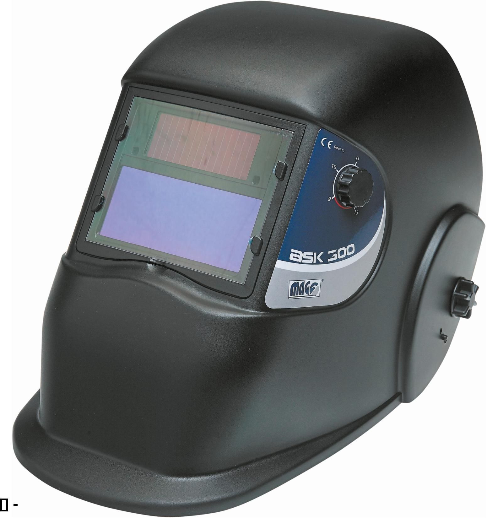 ASK 300 Przyłbica spawalnicza samościemniająca, regulowane przyciemnienie automatycznego filtra optycznego od 9 do 13. Zgodne z normą EN 166, EN 175 oraz EN 379. Marka: CERVA