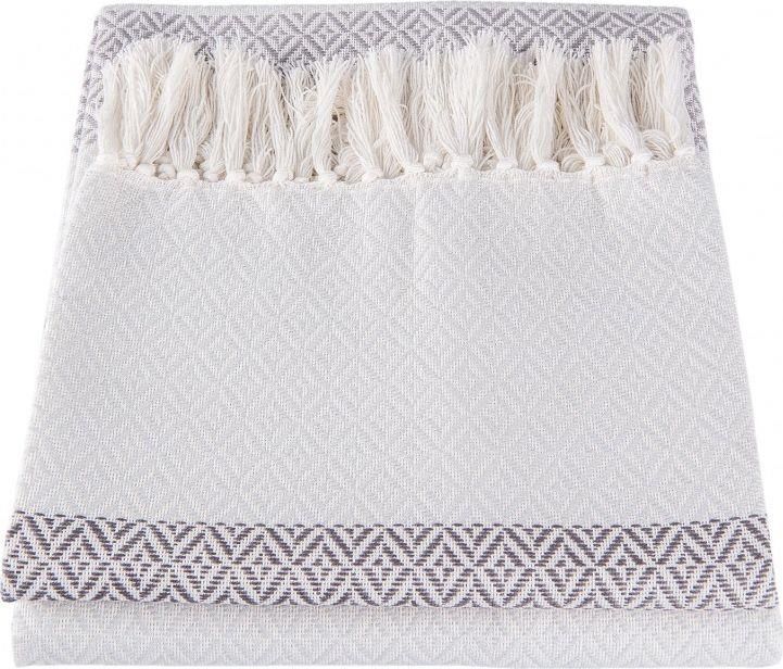 Pled szary, pastelowy, bawełniany, narzuta na łóżko GREY 130 x 150. Stylowa narzuta do sypialni, uchroni przed chłodem w chłodniejsze noce lub wieczory na tarasie. Piękny delikatny wzór w romby i 100% naturalnej bawełny, sprawi, że pled będzie przyjemny w użytkowaniu i lubiany przez wszystkich domowników. Ciepły koc ozdobiony został frędzlami z dwóch stron. Istnieje możliwość prania w delikatnej temperaturze. Wymiary: 130 x 150 cm. 100% cotton