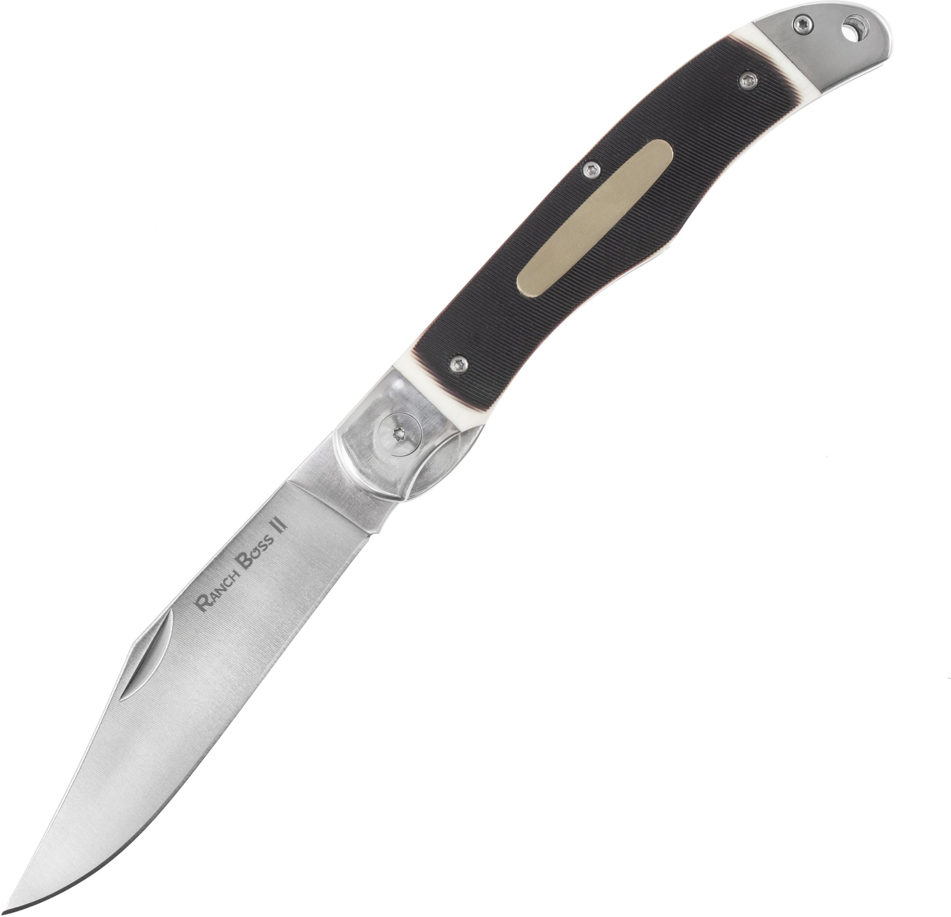 Nóż składany Cold Steel Ranch Boss 2 Trail Wind SK-5 (20NPM1) Typ noża: Składany Styl: Ogólnoużytkowy Długość głowni: 101 mm Grubość głowni: 3.5 mm Profil głowni: Clip-Point Rodzaj ostrza: Gładkie Gatunek stali: węglowa SK-5 Odporność na stępienie: Dobra Odporność na korozję: Niska Sposób …