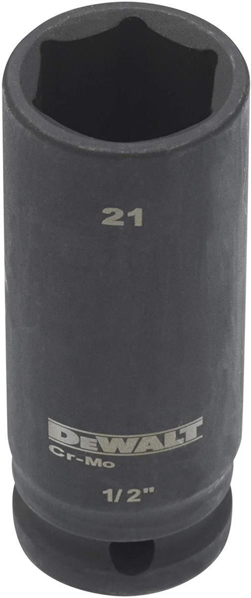 nasadka udarowa sześciokątna, wydłużana na kwadrat 1/2" do śrub, rozmiar 21 mm, DeWalt [DT7555-QZ]: nasadka udarowa 6-kątna, wydłużana na kwadrat 1/2" DeWAlt w rozmiarze metrycznym, wykonana z wysokiej jakości stali stopowej, kutej, oksydowanej, nasadka udarowa przeznaczona jest do stosowania w elektronarzędziach akumulatorowych i sieciowych, oraz pneumatycznych z napędem udarowym. Nasadka udarowa firmy DeWalt [DT7555-QZ]: rozmiar nasadki: 21 mm, długość całkowita: 78 mm, rodzaj nasadki: sześciokątna mocowanie: 1/2"