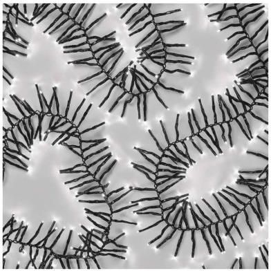 Lampki choinkowe LED Cluster, jeżyk, 960LED 7,2m, zimna biel, 64 programów, IP44 barwa światła: zimna biel|długość przewodu: 5 m|do wysokości choinki: nie dotyczy|funkcje: 8 trybów (multifunkcja)|ilość LED: 960|kolor przewodów: czarny|kształt: nie dotyczy|materiał: PVC|moc: 8,4 W|możliwość …