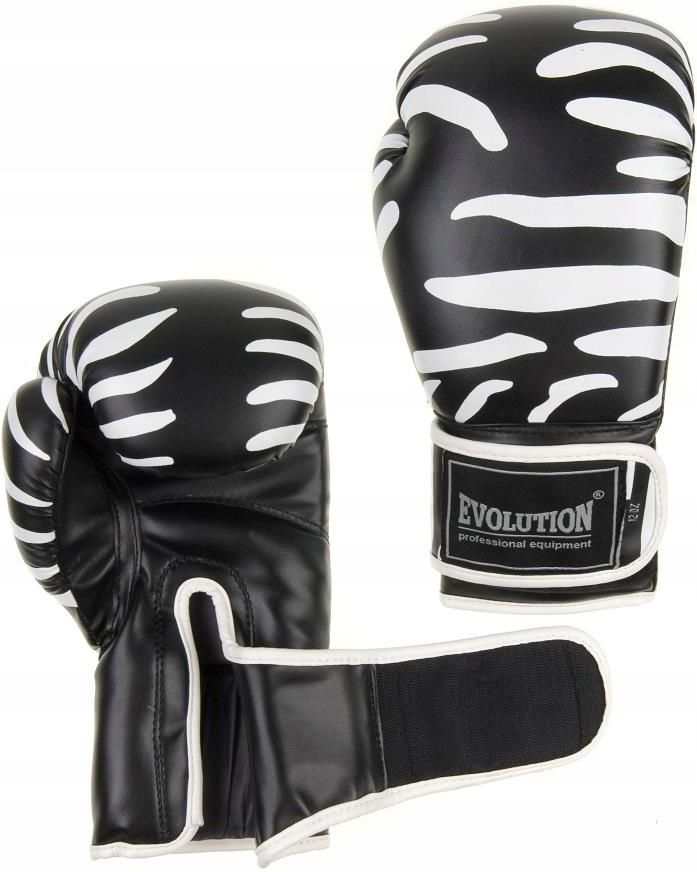 Rękawice bokserskie marki Evolution ze skóry syntetycznej model Zebra Rękawice Zebra marki Evolution to kolejny model rękawic bokserskich przyciągających uwagę swoim oryginalnym wyglądem. Ciekawy design oraz optymalnie wyprofilowanie i zastosowanie wysokiej jakości materiału syntetycznego sprawił, że model ten został szczególnie doceniony przez trenujących zawodników. Mocne zapięcie na rzep ułatwia zakładanie i poprawia stabilizację nadgarstka. Rękawice wypełnione są gęstą pianką, która w znacznym stopniu tłumi i amortyzuje ciosy bokserskie. Testowane przez doświadczonych bokserów. Specyfikacja materiał: materiał syntetyczny; wypełnienie: amortyzująca pianka; zapięcie: mankiet zapinany na rzep. Nie wiesz jak dobrać rękawice? W idealnym dopasowaniu rękawic bokserskich pomoże Ci poniższy schemat 8 OZ - dzieci 8-14 lat, kobiety do 60 kg masy ciała 10 OZ - standardowy rozmiar kobiecy, mężczyźni z mniejszymi dłońmi 12 OZ - standardowy rozmiar męski, kobiety z większymi dłońmi 14 OZ wzwyż - na większe dłonie lub od ok. 90 kg masy ciała Dobierając rękawice bokserskie pamiętaj, że dopasowuje się je do wagi lub wieku trenującego. Dobrze jest, gdy podczas sparingów przeciwnicy walczą rękawicami o takiej samej wadze. Powyższa specyfikacja ma charakter orientacyjny.