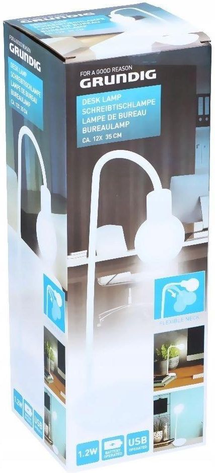 LAMPKA BIURKOWA NOCNA BIAŁA ELASTYCZNA USB GRUNDIG 35CM USB BATERIE Energooszczędna lampa LED firmy Grundig o mocy 1,2 W zapewnia jasne i komfortowe światło oświetlające Twoją pracę. Dodatkowo lampa ta wyposażona jest w elastyczną szyjkę, dzięki czemu możesz skierować światło tam, gdzie go …