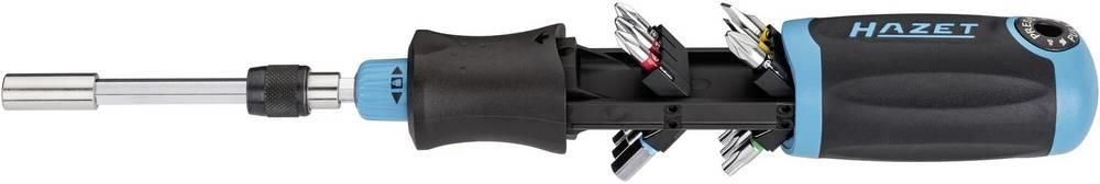 Wkrętak zapadkowy z zasobnikiem na końcówki i groty HAZET 8110 R-3 Zastosowanie Dzięki swojej uniwersalności budowie oraz mocy posiada wiele zastosowań w warsztatach oraz przemyśle warsztaty samochodowe, elektryczne wulkanizacje przemysł produkcja demontaż gospodarstwa prywatne,rolne lakiernictwo pojazdowe Zintegrowany magazynek Funkcję grzechotki można zmienić lub używać jak zwykłego śrubokręta Magazynek na bity można otworzyć jednym ruchem w połączeniu z naciśnięciem przycisku Wyprofilowana rączka zapewnia wygodnie trzymanie w dłoni, zapewniają wystarczającą siłę Długość: 170 mm (zamknięta, bez przedłużenia) Specyfikacja bitów: - Płaskie - 4mm, 6,5mm - Krzyżak - PH1, PH2 - Pozidrive - PZ1, PZ2 - Imbus - 4, 5, 6mm - Torx - T15, T20, T25