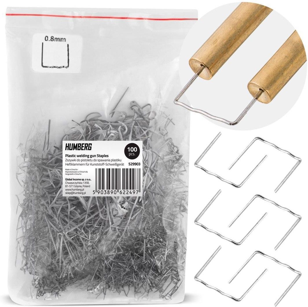 Zszywki do spawarki do plastiku 100 szt. Humberg: 529903 Wielozadaniowy zestaw 100 zszywek typu C wąska fala 8 mm ŁĄCZNIE 100 zszywek. Kompatybilne ze wszystkimi zgrzewarkami. Z metalu najwyższej jakości. Odporne na rdzę. Typ zszywek o szerokim zastosowaniu - 100 sztuk. Idealne do naprawy pękniętych zderzaków, naprawy zabawek, wnętrz i kokpitów pojazdów (samochodów/motocykli), naprawy obudowy sprzętów AGD. Zszywki do spawarki do plastiku to proste rozwiązanie dla każdego, kto chce uniknąć kosztownych wizyt w warsztacie. Pęknięty zderzak — zamiast wymieniać cały element, można go pospawać, co będzie szybsze i tańsze. Obudowy reflektorów lub osłony silnika — te elementy często pękają, ale naprawa spawarką przywróci ich funkcjonalność bez konieczności zakupu nowych. Niestandardowe części lub trudno dostępne zamienniki — gdy części są rzadkie lub drogie, naprawa jest bardziej opłacalna.