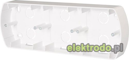 Produkty serii TREND to delikatny, subtelny kształt w bogatej palecie kolorystycznej m.in. białym, beżowym, błękitnym, brązowym, grafitowym oraz w kolorach metalizowanych. Ogromną zaletą serii jest możliwość komponowania mechanizmów w układach wieloramkowych. Zastosowanie ramek wielokrotnych, umożliwia montaż do pięciu elementów w pionie lub poziomie. Dodatkowym atutem serii Trend, która zasadniczo reprezentuje serię osprzętu elektrycznego podtynkowego, jest możliwość natynkowego montażu gniazd i łączników za pomocą puszek natynkowych, dedykowanych do tej serii produktów. Puszki natynkowe – jak wszystkie produkty z serii Trend – dostępne są w popularnych wersjach kolorystycznych. W ofercie firmy Karlik znajdują się zarówno puszki pojedyncze, puszki podwójne, puszki potrójne, a nawet puszki natynkowe poczwórne. Polecamy ich zastosowanie w miejscach, w których trudno wpuścić gniazdo lub łącznik w ścianę a użytkownikowi bardzo zależy na estetycznym wyglądzie pomieszczenia. Puszka montażowa pozioma potrójna Puszki montażowe do łączników i gniazd, naścienne.Stopień ochrony: IP20Puszki montażowe serii TREND nie pasują głębokością do: SR-1 sterownik roletowyRO-1 regulator oświetleniaSH- 1 łącznik hotelowy ...