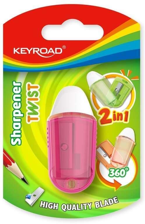 Keyroad Temperówka Plastikowa Z Gumką Pojedyńcza Mix Wadowice