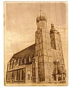 Kościół Mariacki Kraków (małe) - 111 mm x 82 mm 6079 Upominek z grawerunkiem Kościoła Mariackiego (werja mała). Grawerunek jednostronnie zabezpieczony werniksem z połysiem. Wmiary: Wysokość: 111 mm Szerokość: 82 mm Grubość: 3 mm