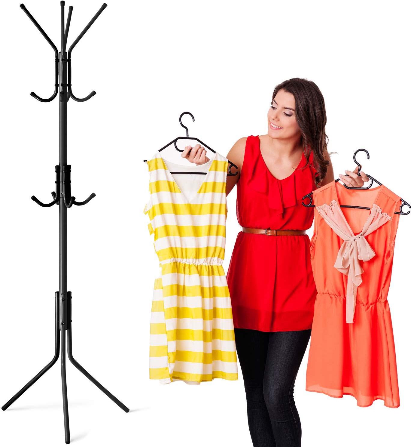 Wieszak stojący czarny metalowy lekki do przedpokoju biura sklepu salonu MOCNY WIESZAK STOJĄCY / PODŁOGOWY DUŻA LICZBA HACZYKÓW Z OSŁONKAMI – aż 12 haczyków umożliwia zawieszenie dużej ilości odzieży, nakryć głowy czy też parasoli. Plastikowe osłony zabezpieczają przed uszkodzeniem odzieży oraz …