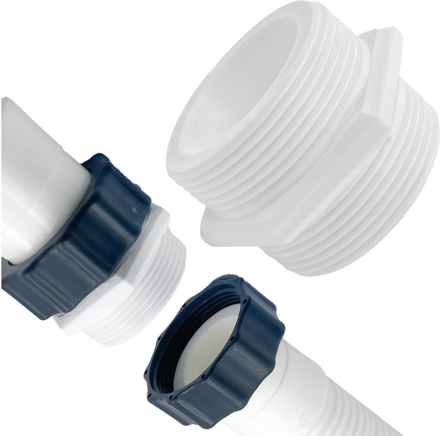 Złączka do rury węża 38mm do basenów INTEX i BESTWAY Umożliwia łatwe i solidne połączenie dwóch węży basenowych Wykonana z wytrzymałego materiału, złączka jest odporna na długotrwałe narażenie na słońce, chlor oraz inne chemikalia stosowane w basenach, co zapewnia jej długą żywotność i niezawodność. Cechy produktu Kompatybilność: Pasuje do węży basenowych marek Intex i Bestway. Odporność na warunki atmosferyczne: Wytrzymuje długotrwałe narażenie na słońce, chlor i inne chemikalia basenowe. Łatwość montażu: Prosty proces instalacji dzięki precyzyjnym wymiarom. Trwałość: Wykonana z materiałów wysokiej jakości, zapewnia długą żywotność. Parametry techniczne Przeznaczenie do rur 38mm Średnica wewnętrzna: 42 mm Średnica zewnętrzna: 60 mm (gwint dla mufy) Praktyczne rozwiązanie Złączka do rury węża 38mm to praktyczne i niezawodne rozwiązanie dla każdego posiadacza basenu. Dzięki niej możesz cieszyć się bezproblemowym i bezpiecznym połączeniem węży