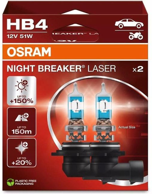 OSRAM Żarówki HB4 Night Breaker Laser Eko +150% Żarówki Osram HB4 Night Breaker Laser +150% - zestaw 2szt Najnowszy model żarówek halogenowych firmy Osram wykorzystuje technologię ablacji laserowej, która zapewnia precyzyjne parametry filtra bańki i więcej światła na drodze, dzięki czemu zapewnia …