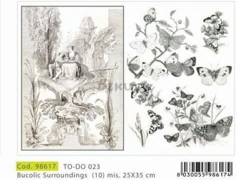 Papier do decoupage 250x350mm -TO-DO 023 1149 BUCOLIC SURROUNDINGS PAPIER DO DECOUPAGE’U TO-DO SOFT PAPER to jedyny papier do decoupage’u na świecie objęty patentem, idealnie dopasowuje się do kształtów dekorowanych przedmiotów. Jego unikatowe właściwości techniczne oraz wysoka jakość artystyczna czynią z niego produkt jedyny w swoim rodzaju, stworzony specjalnie do decoupage’u. Papier ten jest bardzo trwały i wygodny w użyciu. Nie wymaga moczenia przed klejeniem. oryginalne włoskie wzornictwo odporny na wysokie temperatury trwałe kolory bardzo wytrzymały idealny na każdą powierzchnię: metal, porcelanę, karton, drewno, tkaninę, wosk nie zawiera ligniny ani kwasów właściwość tkaniny (elastyczny pod wpływem wilgoci) cienki Wymiar: 25 x 35 cm