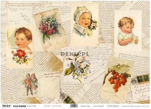 Papier do decoupage 350x500mm -TO-DO R001 1180 Antique Cards Papier ryżowy TO-DO z nadrukowanymi motywami. Wymiary: 35 x 50 cm
